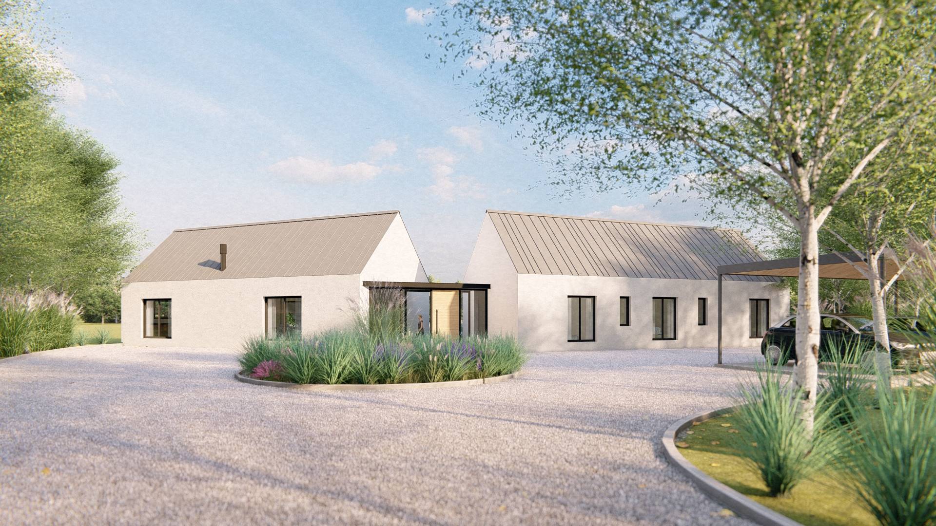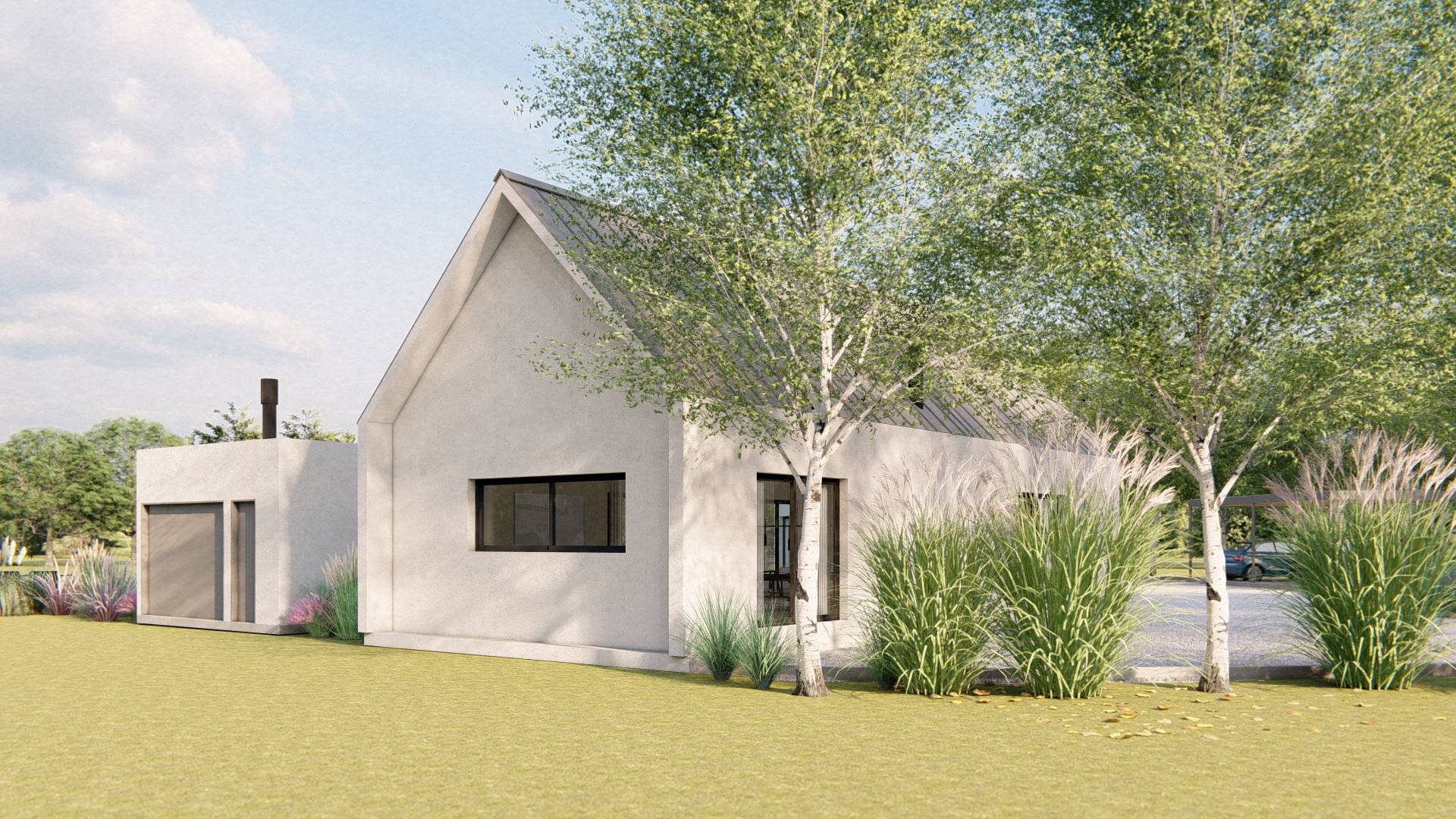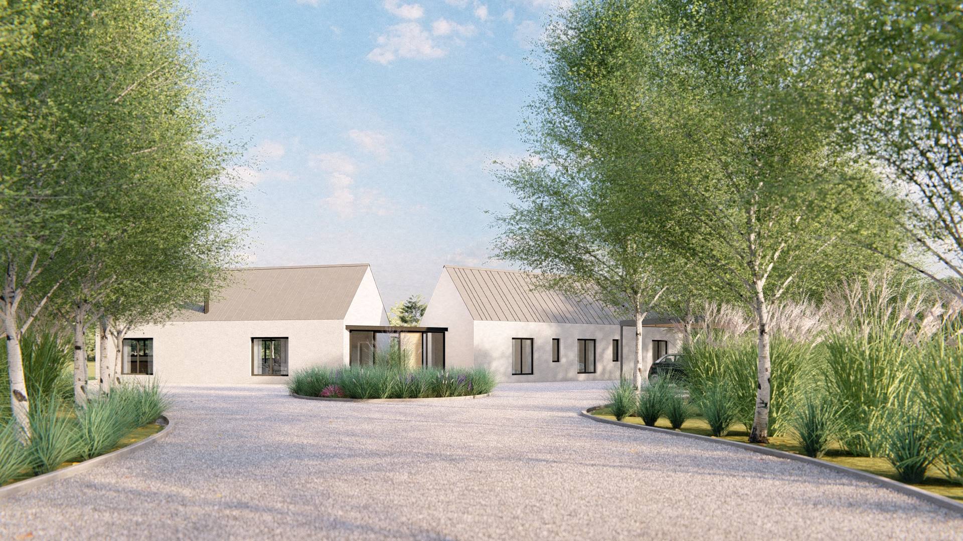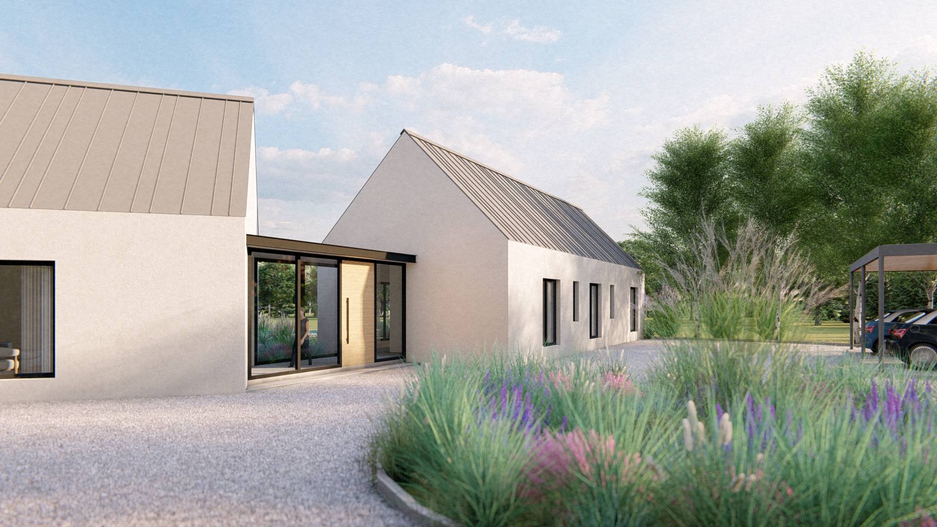 El acceso vehicular a la vivienda se desarrolla de forma orgánica, resguardado por un majestuoso sendero de álamos que brinda sombra y envuelve la casa en un cálido abrazo. Además, la residencia se encuentra rodeada de un exuberante tapiz de gramíneas y especies vegetales diversas, que fomentan un paisajismo orgánico y cambiante, en constante diálogo con el diseño espacial de la vivienda.