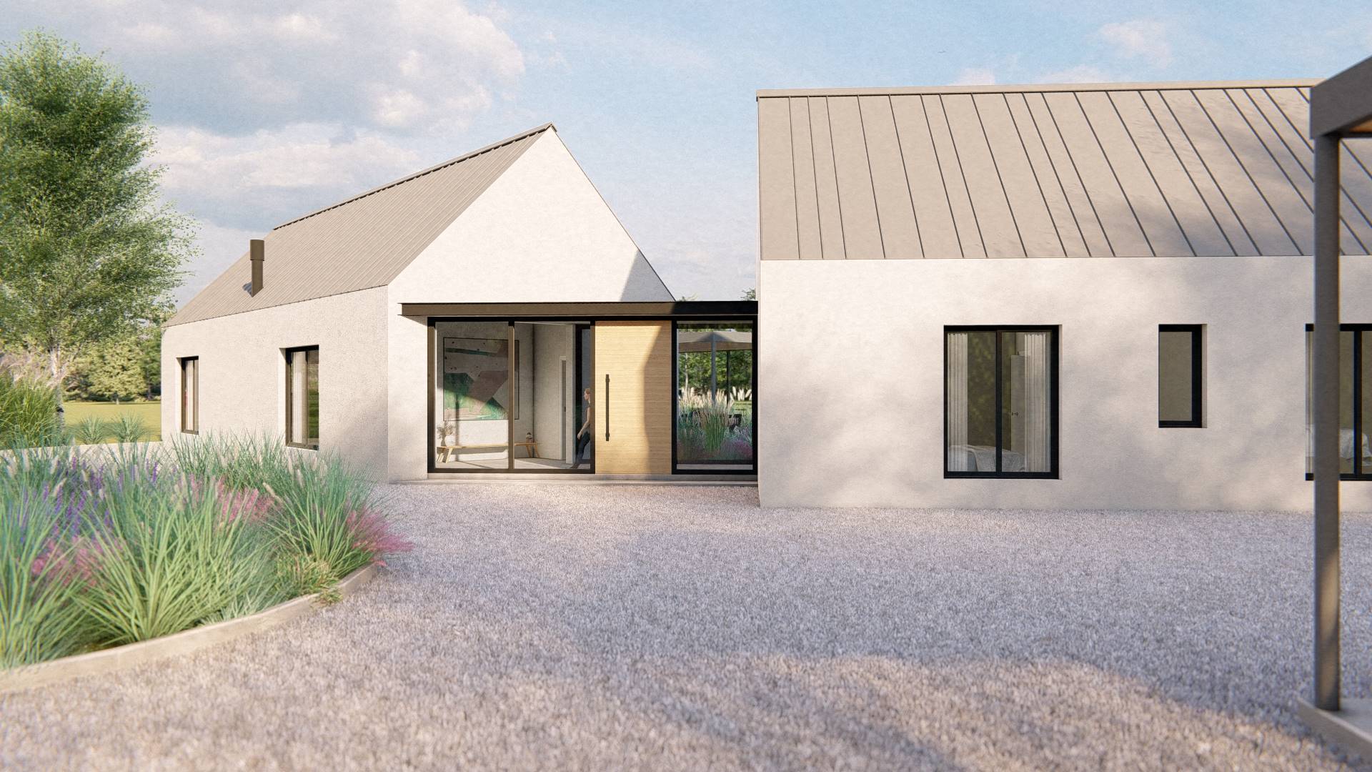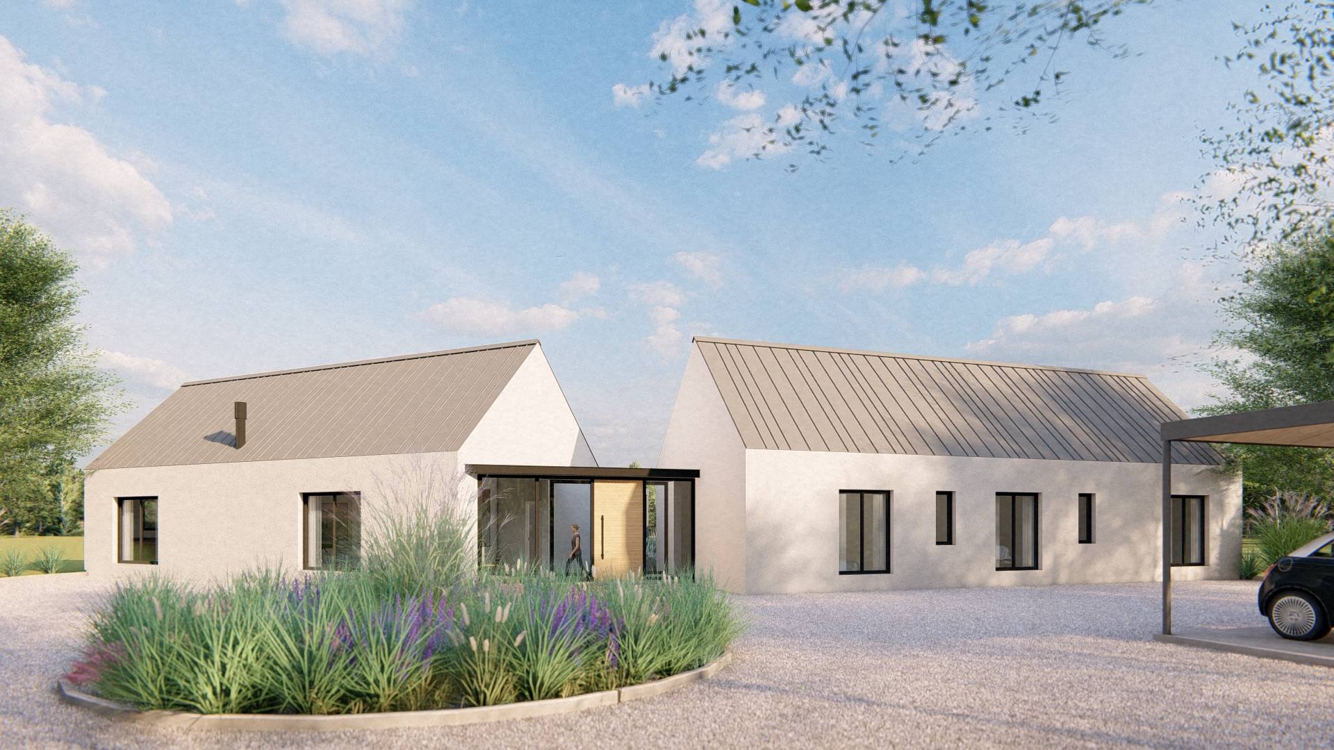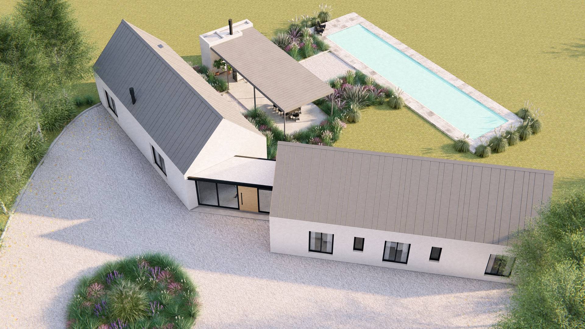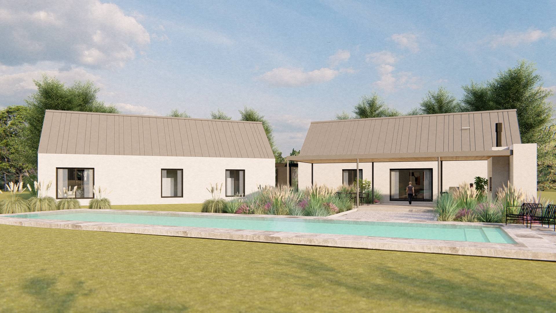 Frente a un extenso terreno de 14,000 m², nuestro estudio se enfrentó a un desafío fascinante: cómo optimizar este generoso espacio de manera que revelara su potencial pleno. La solución propuesta consistió en articular dos volúmenes principales que albergan el programa residencial, separados por un hall de acceso permeable que actúa como un conector espacial y morfológico.