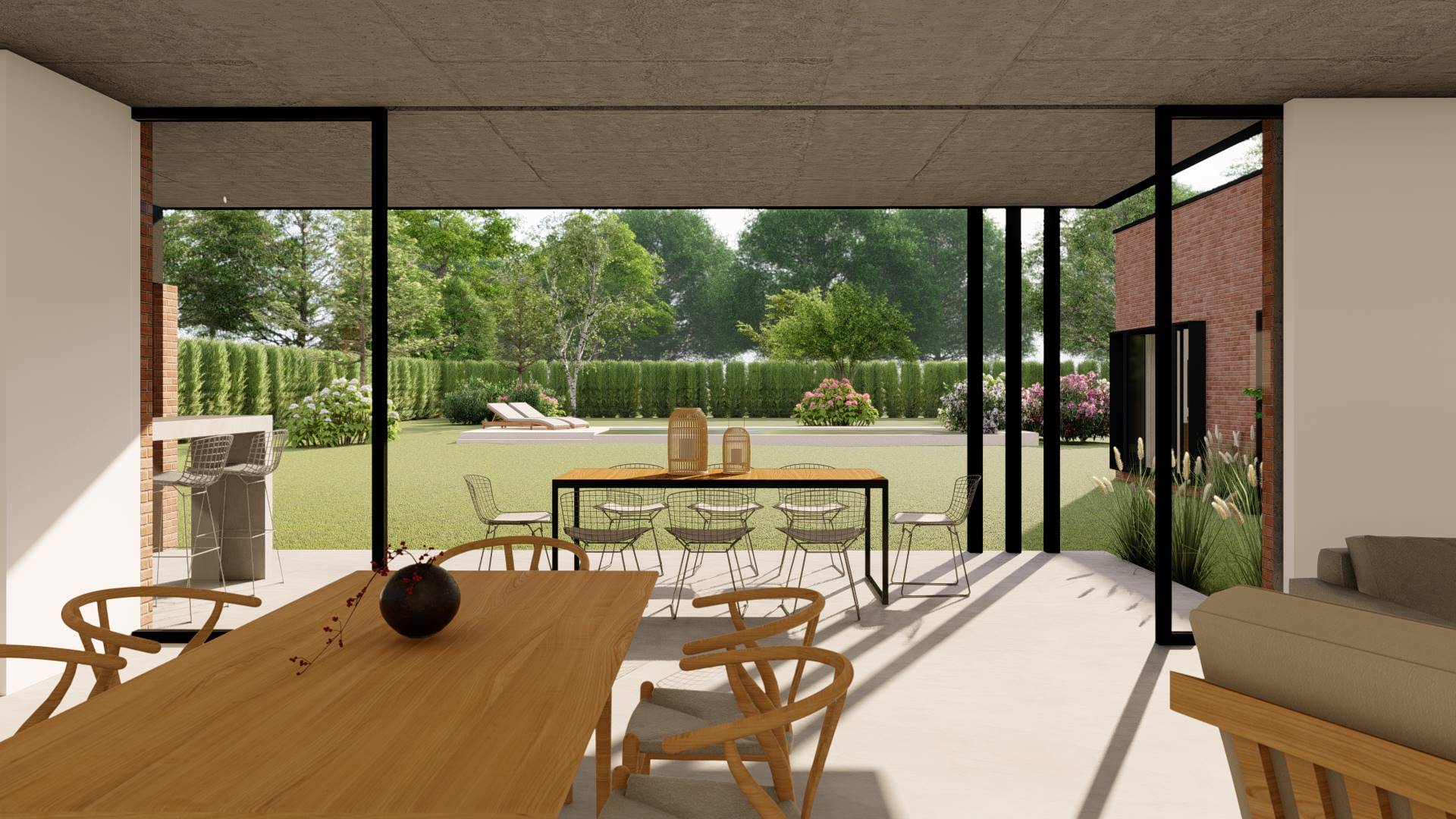La vivienda se despliega en un solo nivel, promoviendo la fluidez entre el interior y el exterior. La organización espacial está magistralmente segmentada en áreas públicas y privadas, facilitada por un patio interno que actúa como el núcleo organizador del plan.