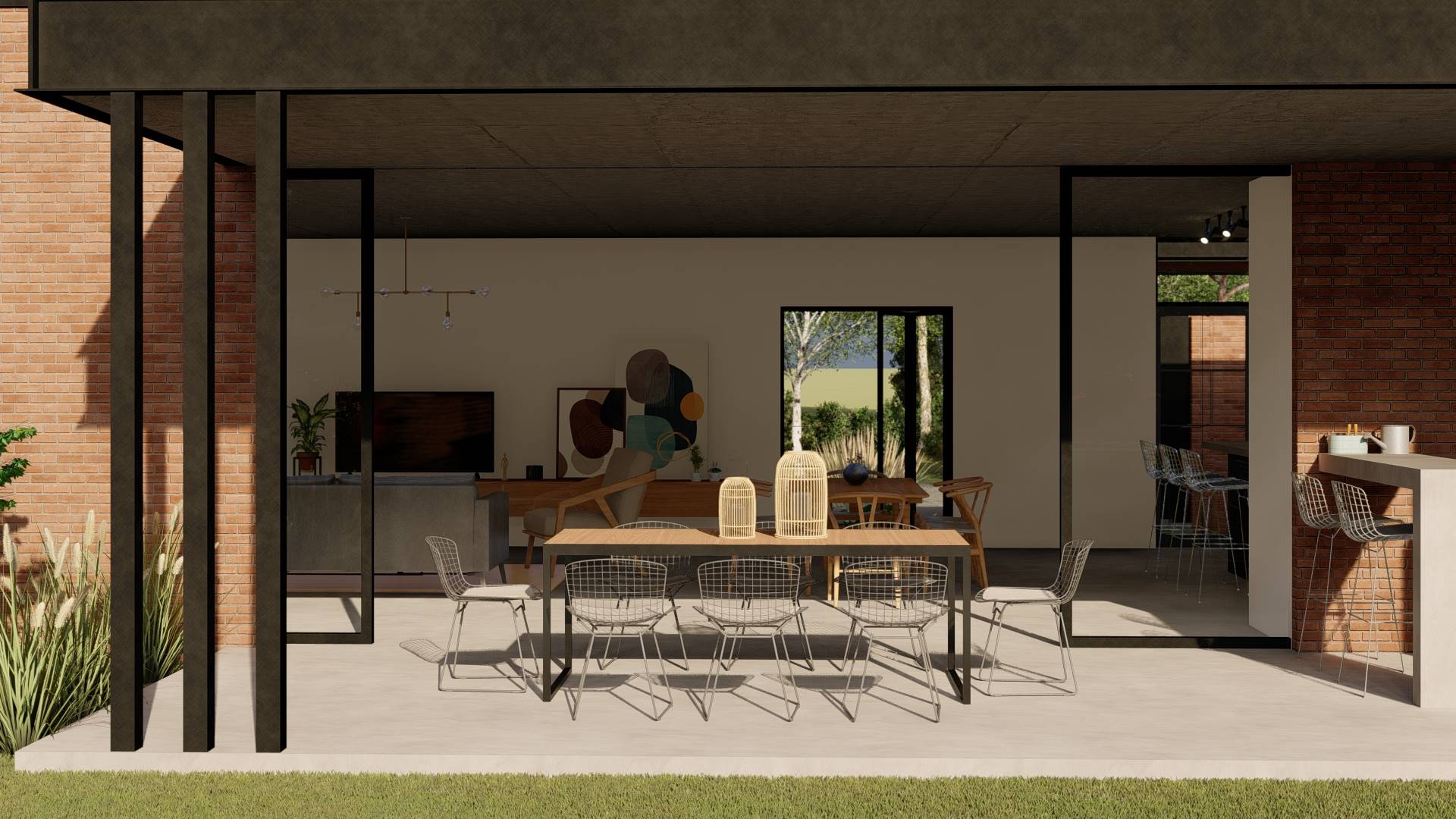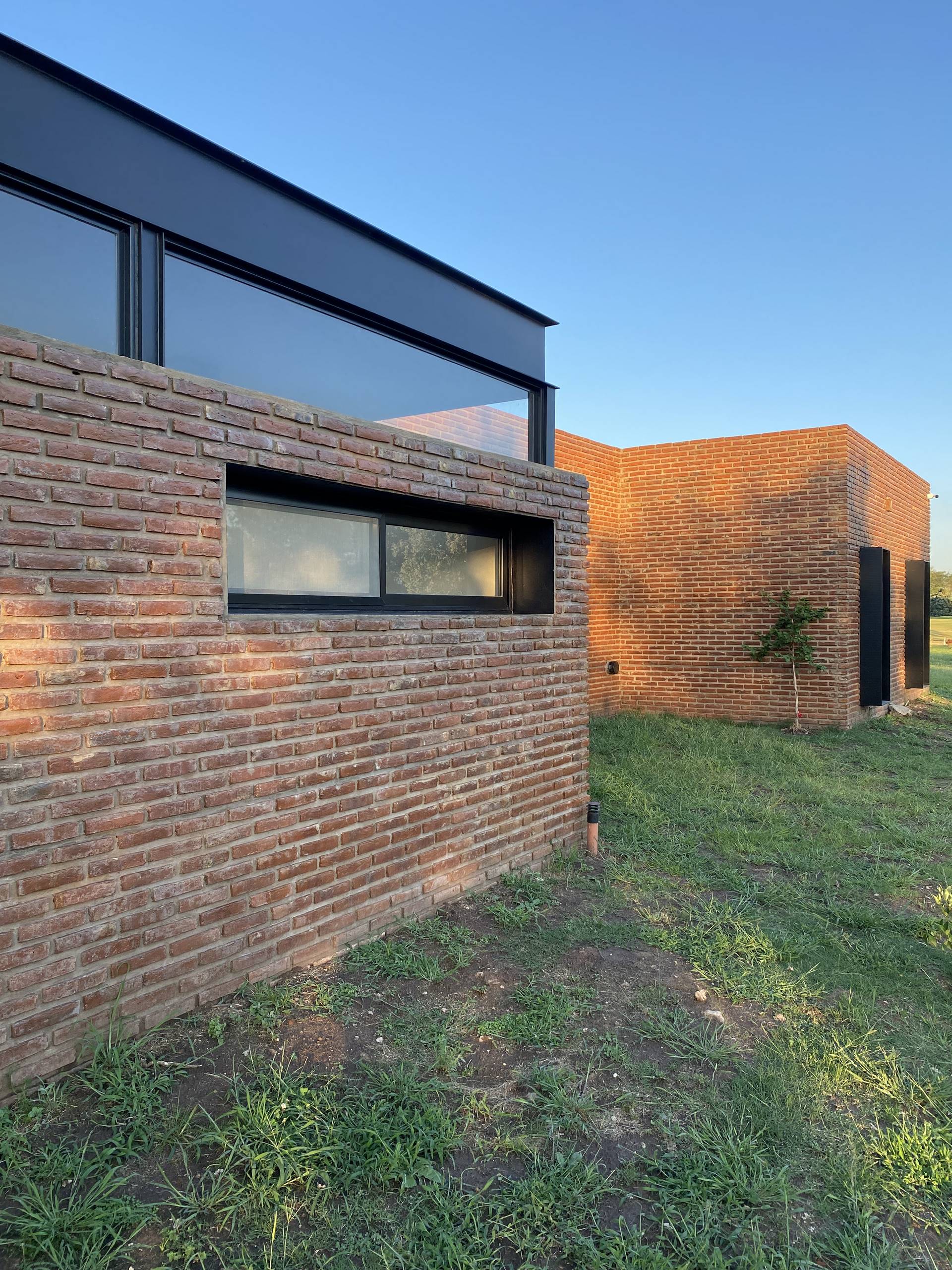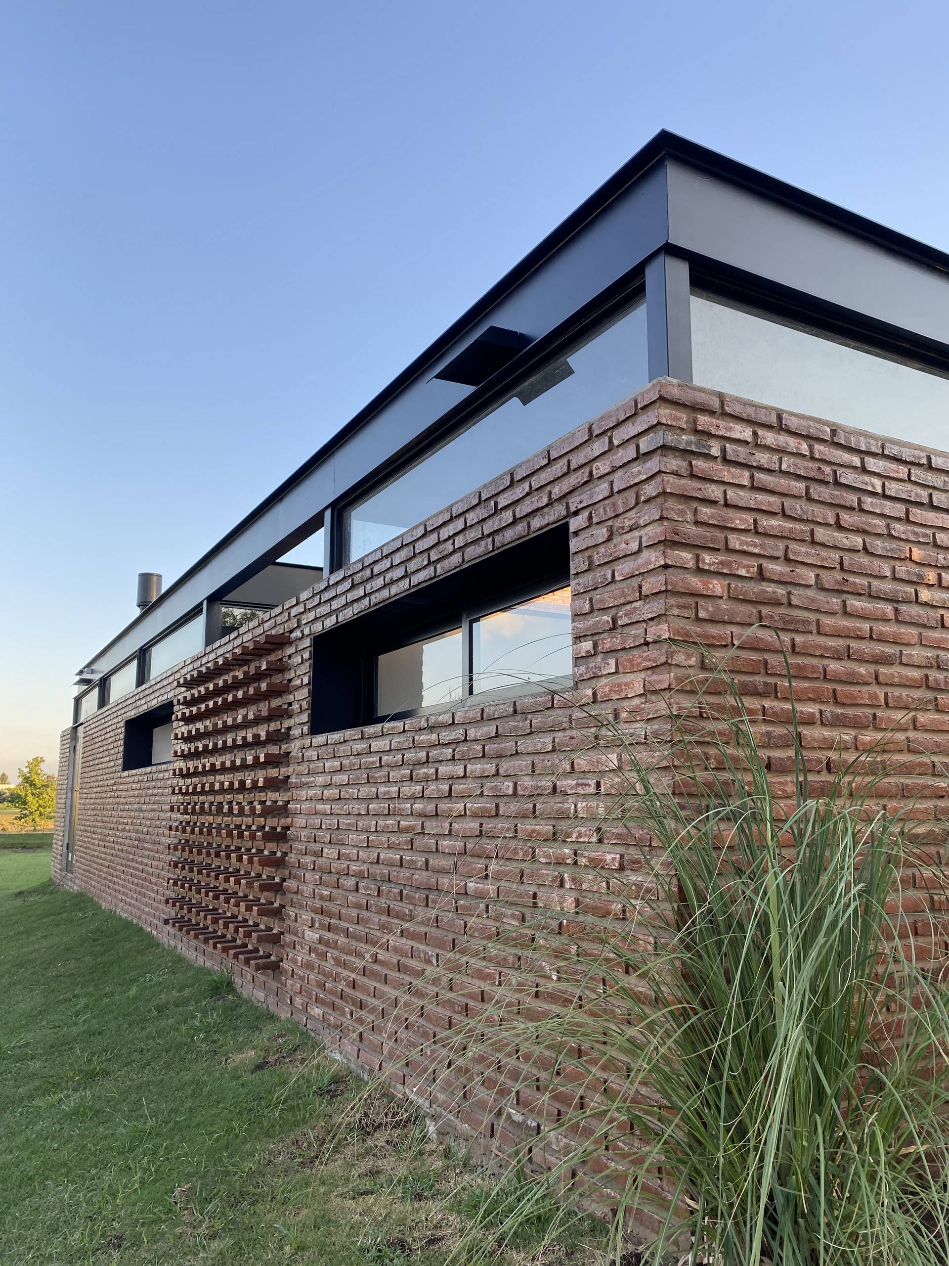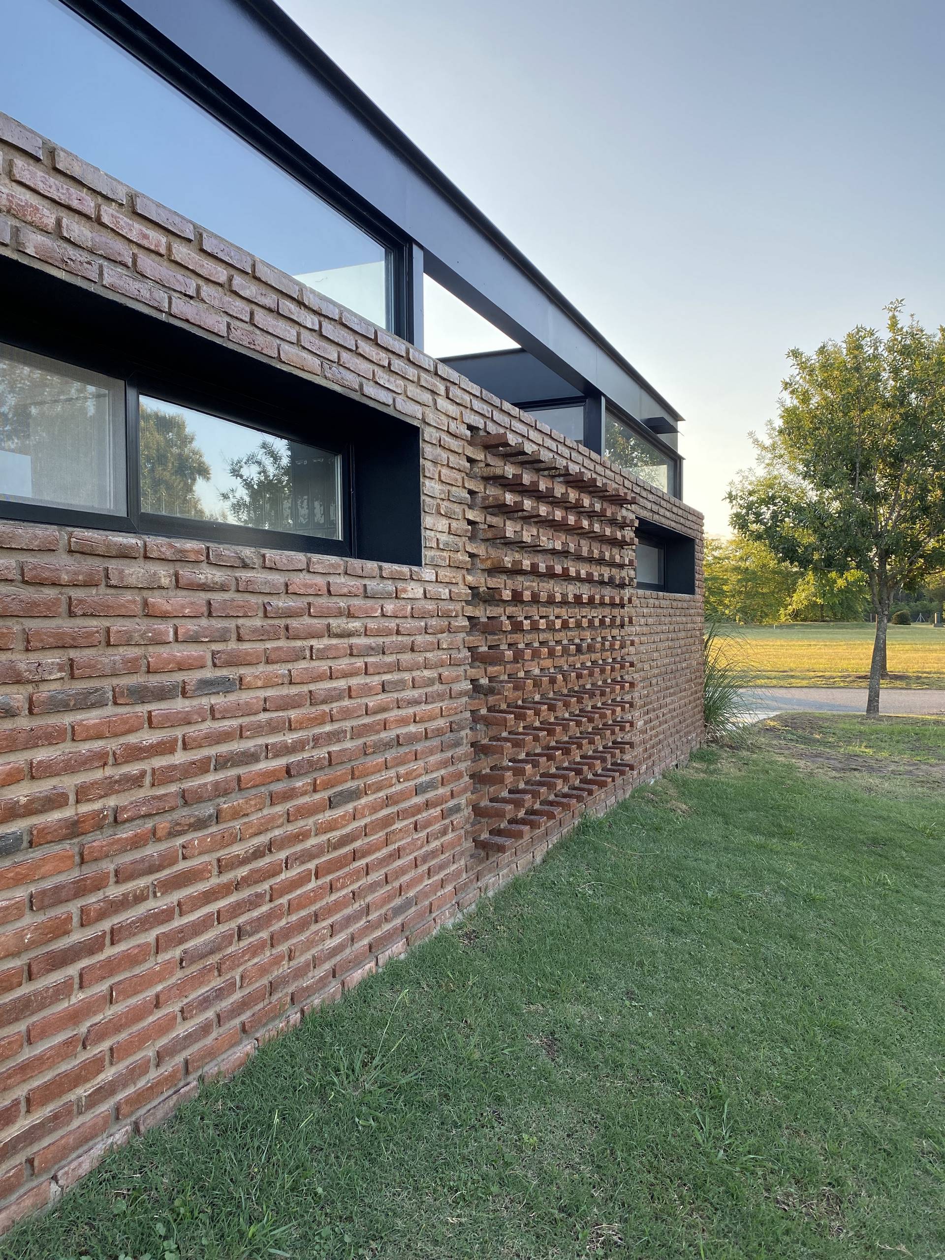 Ubicada en el Club de Campo Everlinks en Luján, Buenos Aires, la vivienda emerge como un testimonio de la pureza material y la sofisticación funcional. La premisa fundamental del proyecto fue la celebración de los materiales en su estado más auténtico: ladrillo, hormigón, vidrio y acero se entrelazan con la luz natural en una composición que refleja tanto robustez como elegancia.